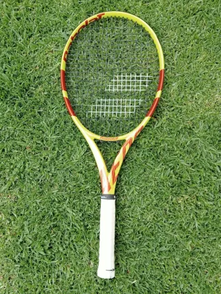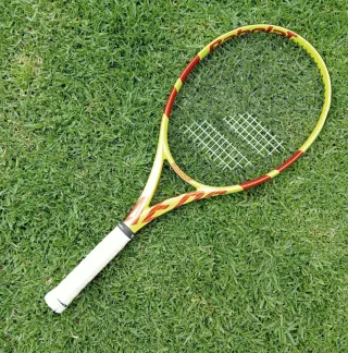 Raqueta de tenis BABOLAT AERO G, en color amarillo y rojo.🎾 - Marco con diseño llamativo, con colores amarillo y rojo vibrante, y detalles en negro. - Cuerdas blancas. - Grip blanco. - Logo de Babolat visible en el marco. - Peso 270 gr. - Balance: 320 mm. - Largo: 660 mm. - Patrón cuerdas: 16x19. - Tamaño cabeza: 102. Nueva sin estrenar.🎾🥎 Sin arañazos, grietas, ni señales de uso. El cordaje está en perfecto estado. Ideal para jugadores adultos, y perfecta para principiantes o jugadores aficionados. Se vende por no darle uso. Raqueta 65€. Raqueta + funda-raquetero 70€.