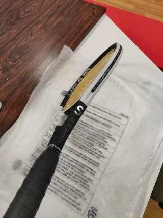 Raqueta de tenis Babolat Pure Drive 100 2025. Solamente ha sido usada en tres partidos, menos de 6 horas de uso, está prácticamente nueva. Encordada con RPM Blast a 24kg, puño 2. Es un auténtico raquetón, un 9 en todo y en potencia un 11. La mejor raqueta para el saque, de fondo la pelota sale con mucho peso y muy fácil darle profundidad. En dejada y volea es una raqueta facilísima, te lo da todo hecho, tienes la sensación de hacer lo que quieras que la respuesta es buena. La vendo por lesión de hombro, pero es una delicia. Una raqueta perfecta si buscáis jugar mejor, no es nada técnica y si no eres pro es lo ideal. Comprada por 280