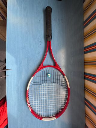 Raqueta de tenis Dunlop Sport Reflex en color rojo. - Marco de color rojo y blanco. - Empuñadura negra. - Poco uso. - Incluye funda. - Desgaste únicamente en pintura. Solo venta en persona Precio no negociable