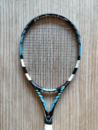 Raqueta de tenis Babolat en perfecto estado, lista para usar. - Diseño moderno en azul y blanco. -265gr. - Empuñadura negra para un agarre firme.