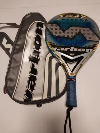 Raqueta de pádel Warlion LW4 Carbon con funda. - Diseño moderno en tonos azules y grises. - Marco de carbono. - Empuñadura azul. - Incluye funda protectora.