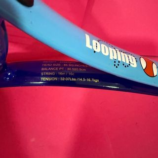 Raqueta de tenis para jóvenes deportistas. Su diseño es llamativo y está pensada para facilitar el aprendizaje. Usado 2 veces Como nueva - Marco de color verde y blanco. - Empuñadura negra con cinta azul.