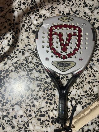 Raqueta de pádel ZILINE FUSION con diseño en color plateado y detalles en rojo y negro. Ideal para jugadores que buscan control y potencia. - Marco con acabado mate. - Superficie con agujeros para mejor aerodinámica. - Empuñadura ergonómica.