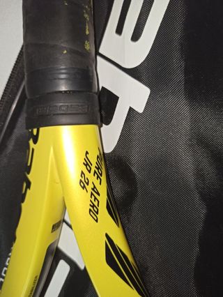 Estado general: "Raqueta de pádel Babolat Viper APT 2023, en buen estado general. La raqueta tiene una pequeña raja en la parte superior derecha, pero es completamente reparable. Ideal para jugadores que busquen un rendimiento de alta gama a un precio más accesible." Características: Material de alta calidad, duradera y ligera. Tecnología Frame String para mejorar la potencia y control. Peso y balance óptimos para el control de la bola. Condiciones: "La raja se puede reparar fácilmente. Es un daño superficial, no afecta el rendimiento general de la raqueta." Precio: "Precio negociable debido a la pequeña raja."