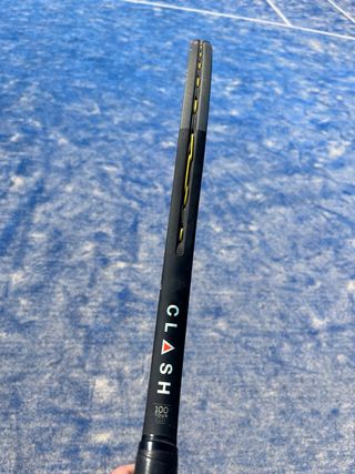 Raqueta de tenis Wilson Clash 100 - Marco de color gris con detalles en rojo. - Cuerdas amarillas monofilamento - Empuñadura 2 - Peso 310gmos - Patron 16 x 19