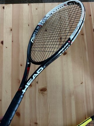 Raqueta de squash de la marca Prince. Ideal para jugar. - Marco negro y blanco. - Cuerdas amarillas. - Empuñadura negra.