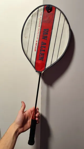Raqueta de bádminton vintage de la marca Van Allen. - Fabricada en aluminio. - Incluye funda protectora.