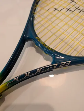 Vendo raqueta de tenis junior Dunlop Power 23, ideal para niños que se están iniciando en el deporte. Es una raqueta ligera y manejable que incluye su funda original para transporte y protección. Estado del artículo: - Estructura: Bien, aunque presenta los típicos roces y rayadas en la parte superior del marco por el uso en pista. - Empuñadura: El grip actual (Artengo) está desgastado, por lo que habría que volver a encintar el mango (poner un overgrip nuevo) para mayor comodidad. Una raqueta de marca reconocida a un precio muy económico, perfecta para clases extraescolares o jugar en familia. #tenis #raqueta #dunlop #junior