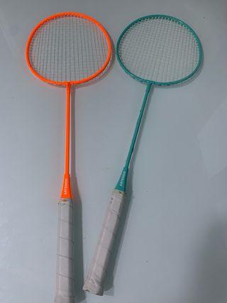 2 raquetas por 10€ Marca boomerang compradas en corte ingles Una más pequeña que otra, Son de niño Azul y verde Habría que ponerle a la verde la tira del mango