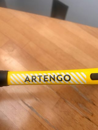 Raqueta de tenis de la marca Artengo, ideal para jugadores que se inician. Ay que cambiarle la coma del mango,pero por todo lo otro perfecto - Incluye funda protectora. - Diseño moderno en negro y verde.