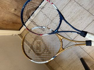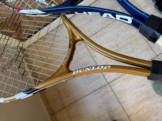 Dos raquetas de tenis, una de la marca HEAD y otra de DUNLOP. - Raqueta HEAD de color azul. - Raqueta DUNLOP de color dorado. - Los grips para cambiar - Regalo funda