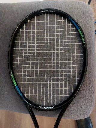 Raqueta de tenis clásica de los años 90. Modelo de grafito con diseño Widebody (perfil ancho), muy estable y potente para su época. Estado del marco: Muy bien conservado, sin grietas. Lleva una cinta protectora Donnay en la cabeza para evitar roces. Funda: Incluye su funda original Pro Kennex en perfecto estado. Empuñadura (Grip): Es una talla L4 (grande). Importante: El grip original necesita ser cambiado o ponerle un overgrip. Cordaje: Original, todavía funcional pero con signos de uso. Ideal para coleccionistas, nostálgicos del tenis.