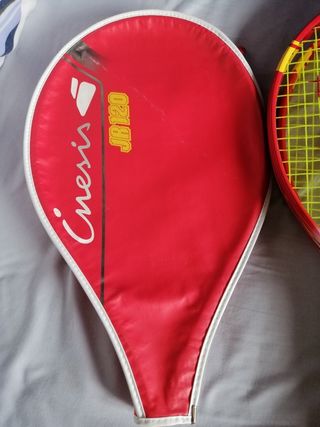 Vendo raquetas Schildkröt con su funda, de color rojo con detalles amarillos. Las raquetas estrechas de acero endurecido con una junta en T. Ojales dobles y cuerdas muy duraderas. El juego viene en una bolsa de transporte de nylon cremallera y correa para el hombro. - Está en buen estado. - Ideal para llevar cosas pequeñas.