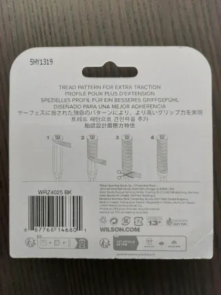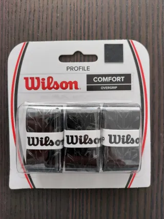 Pack de tres overgrips Wilson Profile Comfort en color negro. Nuevos a estrenar, sin abrir, PRECINTADOS. - Diseñados para ofrecer comodidad. - Para raquetas de tenis, pádel, squash, bádminton...