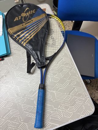 Raqueta de tenis Atomic Limit con funda. - Raqueta de tenis. - Funda protectora negra con detalles dorados y azules. En perfecto estado lista pa jugar
