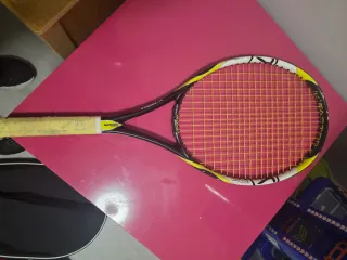 Raqueta de tenis Wilson k Fierce fx 272g Signos de desgaste, pero ninguna fisura, va perfecta. - Marco negro con detalles en amarillo y blanco.