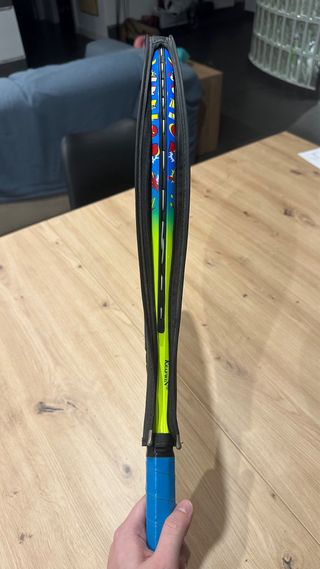 Raqueta de tenis para aprox 10 años, incluye 2 grips nuevos y funda.