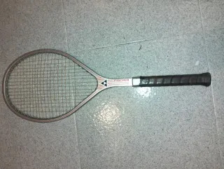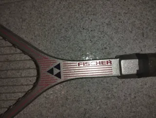Raqueta de tenis vintage de la marca Fisher. Un clásico para coleccionistas o jugadores que buscan un estilo retro. - Diseño plateado con detalles en rojo. - Logo de Fisher en el mástil. Se guarda en funda que no corresponde