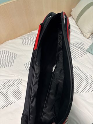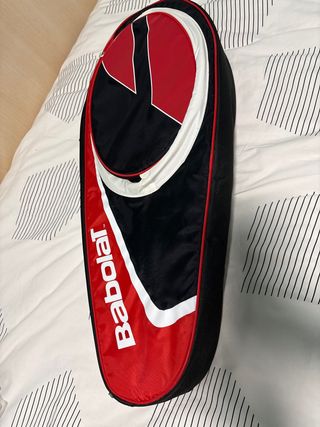 Funda para raqueta de tenis de la marca Babolat. Diseño en color negro y rojo con detalles blancos. - Cierre de cremallera. - Logo de la marca visible.