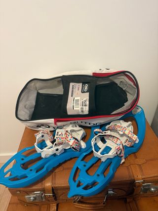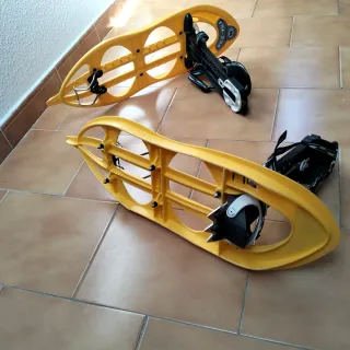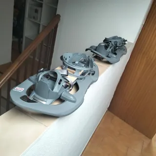 Raquetas de nieve como nuevas. Ideales para caminar por la nieve, hacer rutas invernales. Las vendo por cambio a esquí de travesía. Están en muy buen estado, con muy poco uso. Soy muy fáciles de poner y quitar. - Diseño ergonómico. - Sistema de fijación ajustable. - Incluyen bolsa de transporte.