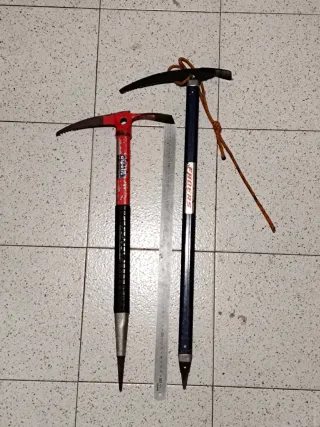 Dos piolets, uno faders como los usados por el ejercito y un alpelit, un clasico muy antiguo llamado hacha de hielo. son dos piolets con muchos ascensos a sus espaldas pero su integridad y mi confianza en ellos es total pero me regalaron uno nuevo y por hacer hueco en casa. Escalada, glaciar, cascada de hielo, montañas, monte perdido, alpes, Aneto, sierra nevada, raquetas, ruta, monte, rescate, hielo, nieve, invierno