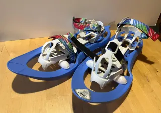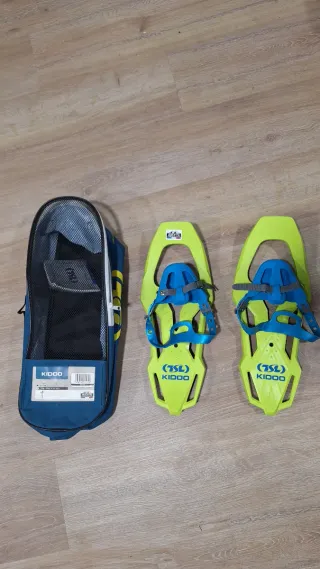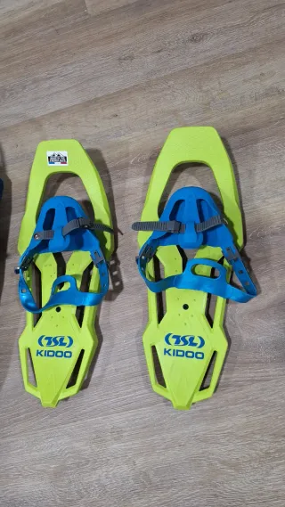 Raquetas de nieve diseñadas para los más pequeños. Son ligeras y fáciles de usar. - Ajustables para diferentes tallas de calzado infantil. - Fabricadas con materiales resistentes para la nieve. - A una se le perdió la pegatina de la marca TSL. -Solo 4 usos, como nuevas tiras velcro impecables, sirven para pie del 20 al 37.