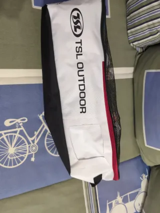 Bolsa de transporte para raquetas de nieve de la marca TSL. - Color gris y negro. - Compartimento principal con cremallera, está perfecta. - Malla transpirable en la parte superior. - 2 Tiras para llevar ( en la parte larga y corta) - Logo de TSL sport equipment.