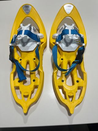 Par de raquetas de nieve TSL en color amarillo. - Diseño ergonómico para mayor comodidad. - Sistema de fijación ajustable. - Ideales para caminar sobre nieve.