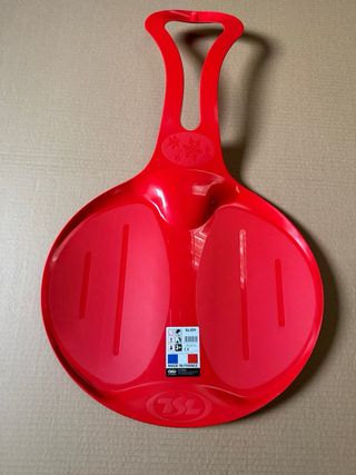 Conjunto de 3 trineos de nieve TSL Outdoor modelo SLIDY, originales de la marca francesa TSL, especializada en material de nieve e invierno. Trineos tipo pala/raqueta, diseñados para deslizarse a ras del suelo, muy divertidos y fáciles de controlar con el cuerpo. Características: • Modelo SLIDY, indicado para tallas grandes • Medidas aproximadas: 70 × 43 cm • Fabricados en polipropileno, material resistente y ligero • Asa integrada para mejor agarre • Color rojo muy visible en la nieve • Apto para niños y adultos • Fabricados en Francia Se vende un pack de 3 unidades. Estado: nuevo.