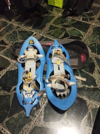 Raquetas de muy buena calidad para andar en la nieve, tienen alza, y los crampones son resistentes, talla 37-40
