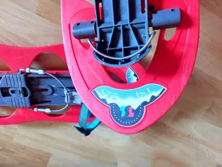 Par de raquetas de nieve TSL modelo 225 en color rojo. - IMPORTANTE las raquetas están tal como se ven en las fotos, por eso el precio. - Diseño ergonómico para mayor comodidad. - Sistema de fijación ajustable. - Fabricadas en material resistente. - Para tallas desde 36 a 47. - No tengo bolsa de trasporte original pero te las entrego en una bolsa de trasporte de nailon. - La pieza que falta se puede comprar por Internet.