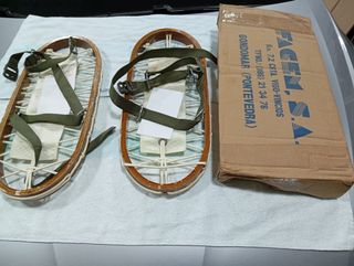 Par de raquetas de nieve de la marca FACEM S.A., fabricadas en madera y con correas de sujeción. - Fabricadas en madera. - Correas de sujeción de tela. - Incluye caja original.