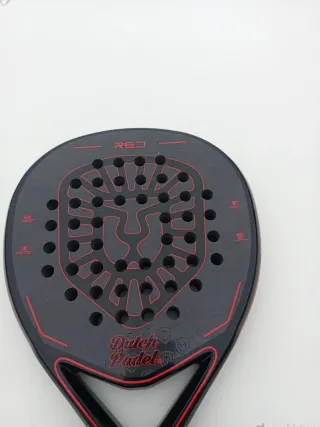 Pala de pádel Dutch Padel modelo RED. - Pala de pádel negra con detalles en rojo. - Diseño con el logo de Dutch Padel. - Agujeros en la cara de la pala.