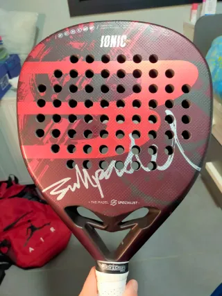 Pala de pádel Bullpadel Ionic Power en color rojo y negro. Diseño moderno y llamativo.Con rasguños que son normales porque se producen solo por jugar - CARACTERÍSTICAS: - Forma: Diamante - Peso: 365-385 gramos - Goma: SoftEVA - Marco: 100% carbono - Cara: Polyglass -Balance:Alto Está pala es perfecta para jugadores de nivel intermedio que es buena en la salida de bola y esa forma diamante le otorga esa potencia en la red. OverGrip totalmente nuevo sin usar y perfectamente puesto incluido!!! También puede venir sin poner a parte.
