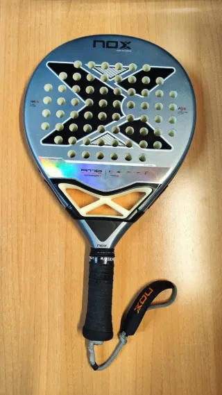 Pala de pádel Nox At10 Pro Cup Comfort, modelo 2025. Incluye funda. - Pala de pádel Nox - Modelo At10 Pro Cup Comfort. - Año 2025. - Poco uso, prácticamente nueva, tiene un pequeño roce con la Red que retoqué (ver última foto, casi inapreciable). - Superficie rugosa para efectos, fibra de vidrio aluminizada, y corazón en color blanco que se vuelve naranja fluorescente con la luz del sol (muy chulo). - Funda protectora incluida.