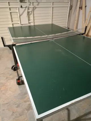 Mesa de ping pong plegable en buen estado. Ideal para disfrutar de un partido en casa. - Superficie de juego verde. - Incluye red (algo estropeado por el uso) Cuesta un poco abrirla. Es voluminosa y no cabe en cualquier coche. No hago envíos.