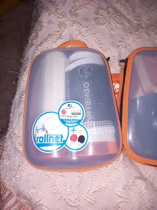 Set de ping pong portátil Rollnet de la marca Artengo. Ideal para jugar en cualquier lugar. - Red extensible de 20 cm a 2 m. - Incluye dos palas y tres pelotas. - Diseño compacto y fácil de transportar.