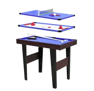 Divertida mesa multijuegos 3 en 1 que incluye billar, air hockey y tenis de mesa. - Tablero de billar con accesorios. - Superficie de air hockey. - Mesa de tenis de mesa con red.