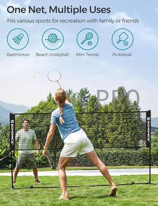 SONGMICS - Juego de red de bádminton; juego deportivo portátil para bádminton, tenis, voleibol infantil, pickleball; de fácil instalación; red de nailon con postes para interior y exterior