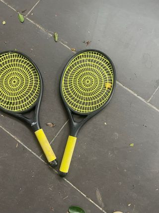 Par de raquetas de tenis para niños. Perfectas para iniciarse en el deporte. - Diseño con red amarilla. - Mangos de color amarillo.