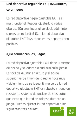 Red deportiva de 3 metros de longitud, ideal para diversas actividades. Se puede usar para badminton, voley, tenis, futvoley.... - Altura regulable a 3 alturas para adaptarse a diferentes juegos. - Estructura portátil y fácil de montar.