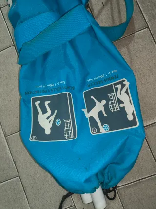 Set de red de voley Kipsta BV300, ideal para playa o jardín. Se encuentra en buen estado. - Incluye postes, red y accesorios de anclaje. - Bolsa de transporte Kipsta. - Diseño portátil y fácil de montar.