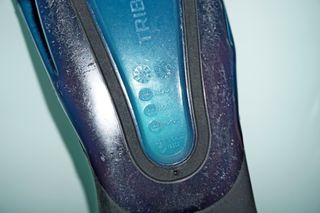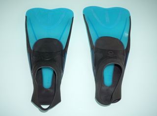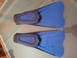 Aletas de natación Tribord, para niño. Talla 30-31, para playa o piscina, con marcas de uso pero en buen estado general y totalmente funcionales. Con red de transporte.