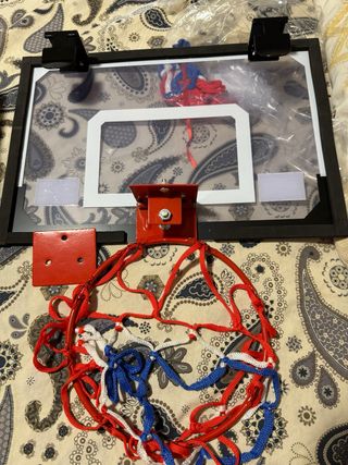 Vendo una mini canasta de baloncesto para niños. Incluye aro, red y tablero. Es ideal para jugar en casa o fuera. Si estrenar. Medidas en la ultima foto. - Mini canasta de baloncesto roja. - Aro y red incluidos. - Tablero transparente. - Perfecta para jugar en casa.