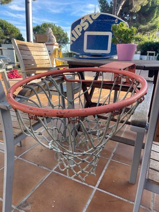 Canasta de baloncesto para exterior - Diámetro interior: 45cm - Estructura de hierro resistente. - Red incluida. La red está un poco sucia por estar al exterior pero no está rota. El aro está perfecto. No está oxidado