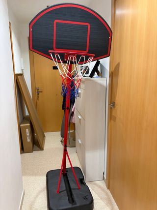 Canasta de baloncesto infantil con base rellenable. - Aro de metal. - Red de nylon. - Altura 1,90m. - Se puede recoger y guardar en el maletín.