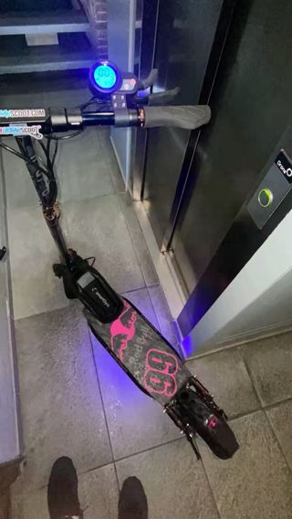 Patinete eléctrico con un diseño llamativo de vinilo Red Bull. funciona perfectamente - Diseño de vinilo Red Bull. - Empuñaduras negras. - Lo único hay que cambiar el sensor de temperatura del motor aprox 10€ - centralita nueva a extrenar