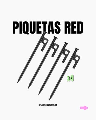 Set de 4 piquetas profesionales para redes de vóley playa. Son de acero inoxidable color negro y cuentan con un diseño robusto para una buena sujeción. 1 x 4€ 4 x 12€ - Material: Acero Inoxidable - Color: Negro - Cantidad: 4 unidades