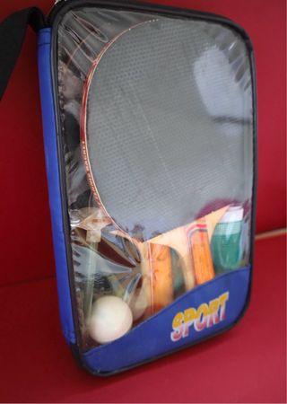 Completo set de ping pong para disfrutar en casa o al aire libre. - Funda - Dos raquetas de ping pong. - Pelotas de ping pong y red.