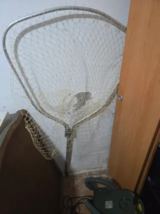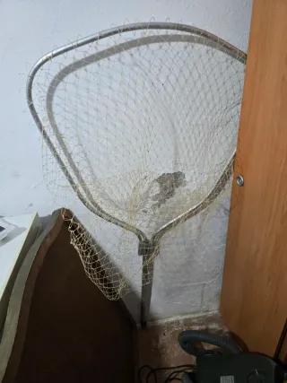 Red de pesca de gran tamaño, ideal para capturar peces. - Marco metálico resistente. - Malla de red en buen estado.